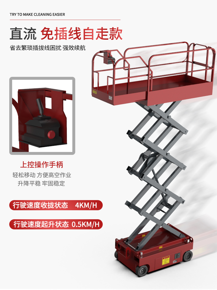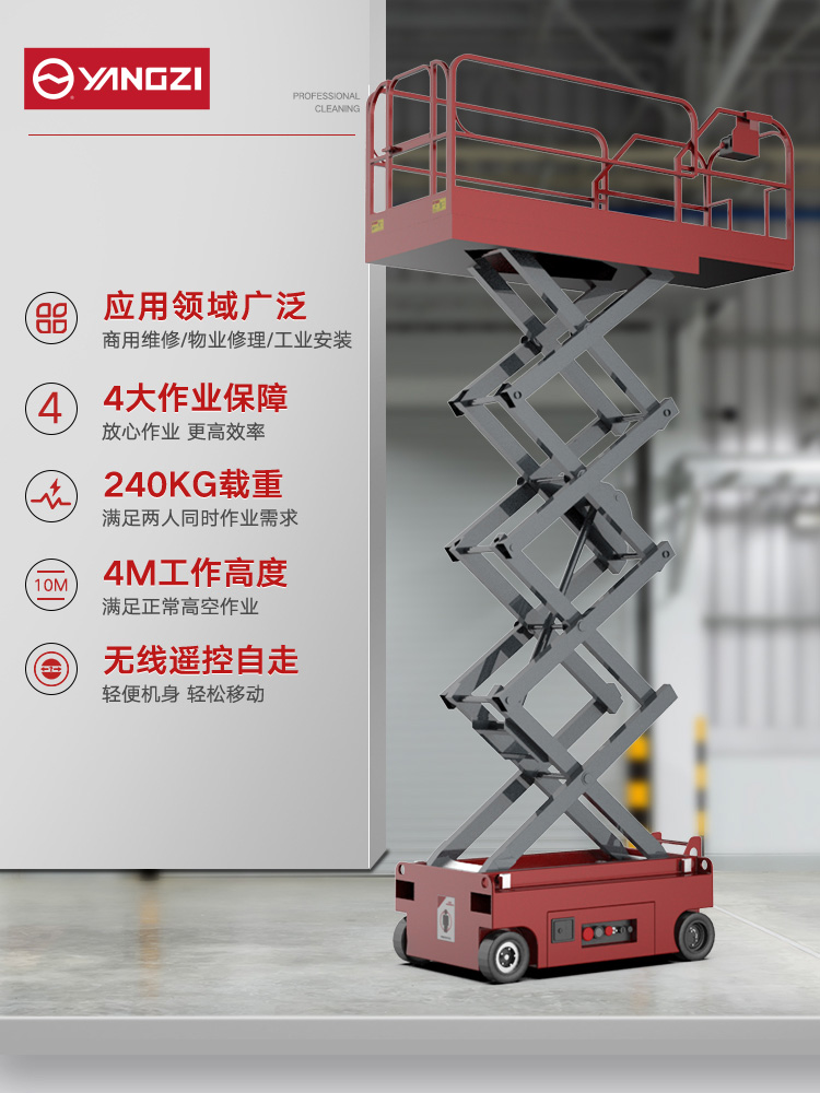 揚(yáng)子升降平臺(tái):無線自走、堅(jiān)固穩(wěn)定、升降平穩(wěn)、移動(dòng)方便、彈簧減震、安全環(huán)保等優(yōu)點(diǎn),還有多場(chǎng)景使用,加長(zhǎng)延伸站立臺(tái),還配有應(yīng)急下降按鈕