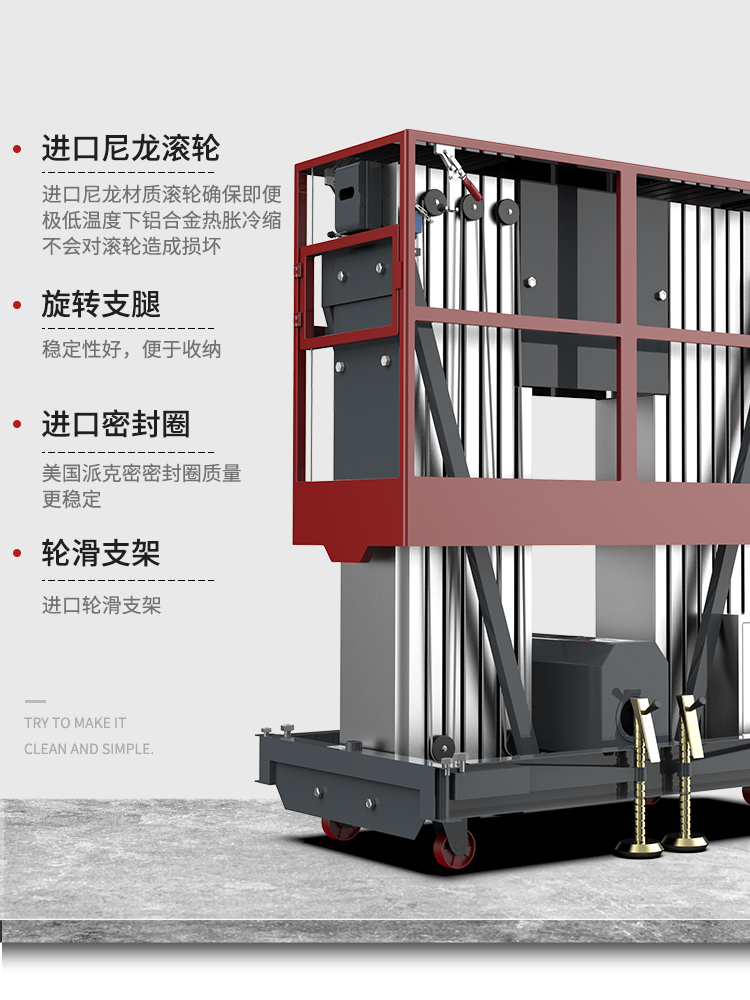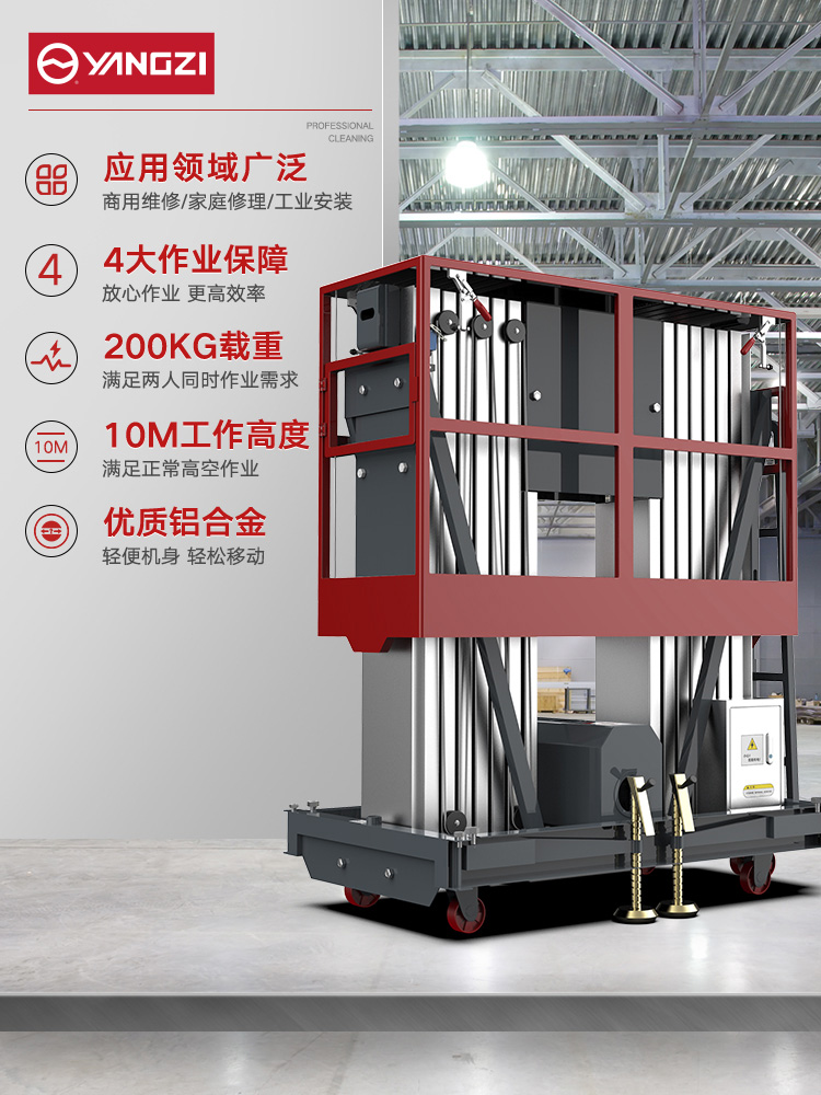 揚子升降平臺YZ-DS2:應(yīng)用廣泛,4大作業(yè)保障設(shè)置,承載量打穩(wěn)如磐石,可以輕松移動,緊急斷電防誤操作,雙控制臺,雙操作更安心更方便,還擁有防爆閥等優(yōu)質(zhì)選材