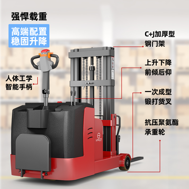 揚(yáng)子堆高車CPD10:整車是噴塑烤漆,一體鍛打貨叉,加大前輪設(shè)計(jì),強(qiáng)勁高效,永磁電機(jī),操作便捷,緊急制動,不挑托盤的叉車,可調(diào)節(jié)貨叉更方便。