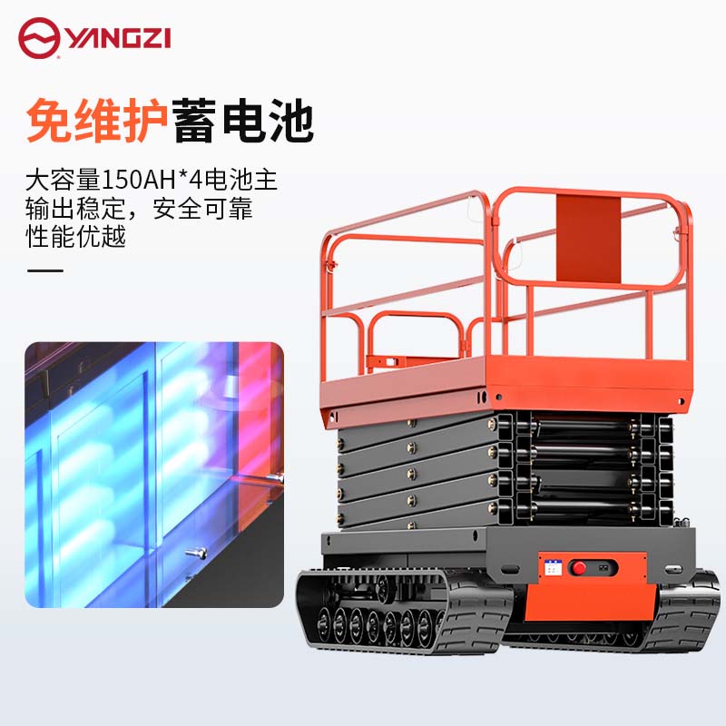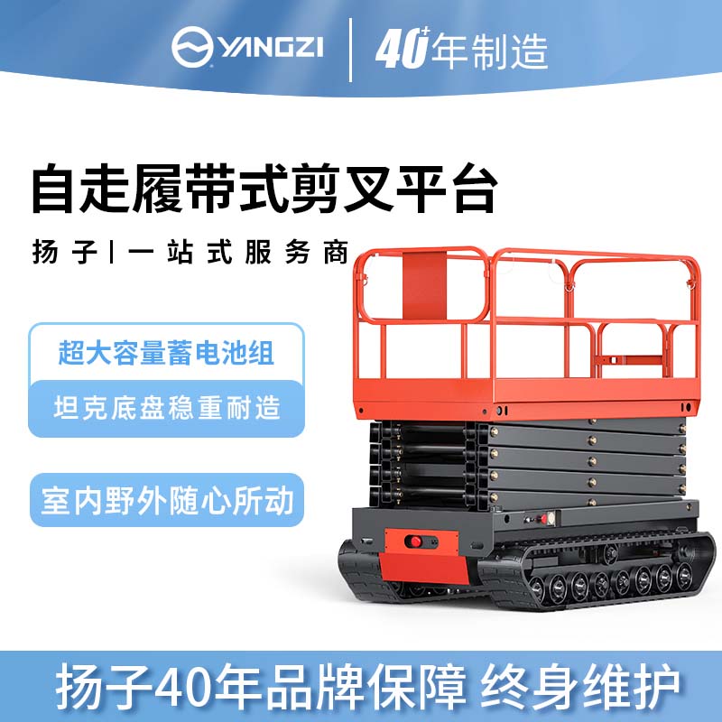 揚子履帶式升降平臺SJY0:結構穩定,耐磨耐用,適應能力強,而且簡單操作更方便快捷。升降平臺就選揚子