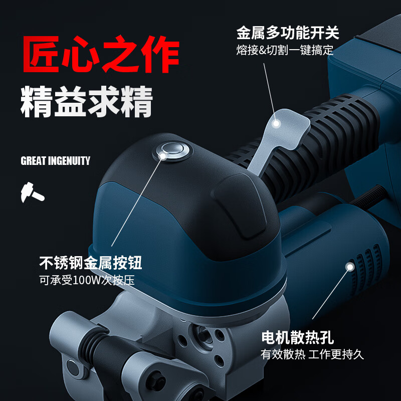 手持電動打包機D19,5500N強勁拉力,銅芯電機低音轉(zhuǎn)軸,400MA*2雙電池超長續(xù)航,充電僅需90分鐘