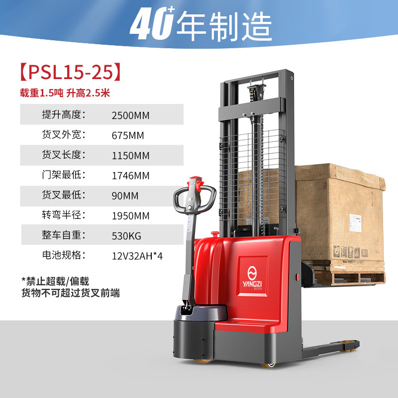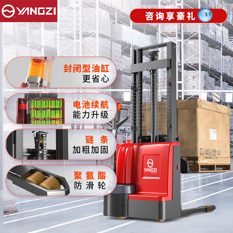 揚子步行式全電動堆高車PSL1525-1.5噸升高2.5米,加強型油缸,全新技術升級,快速提升油缸,提升速度快而有力